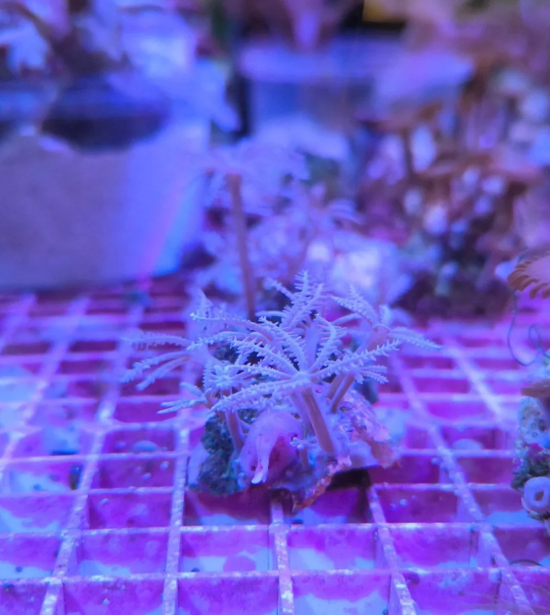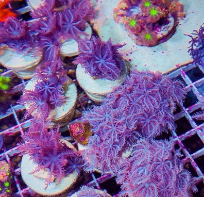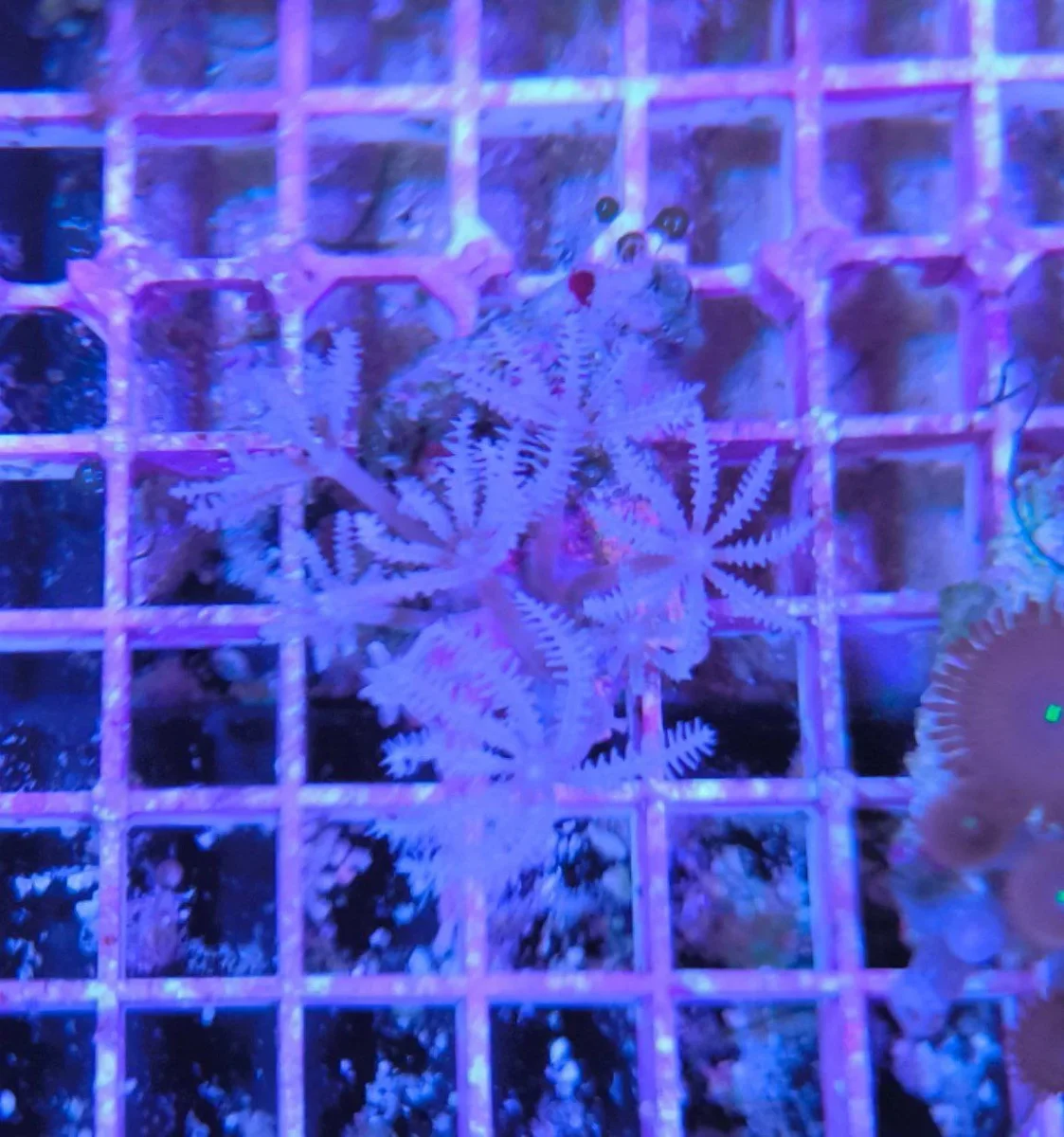 Corallo facilissimo, simile esteticamente alla xenia ma meno “schizzinoso” per la chimica dell’acqua Cresce su qualsiasi superficie, vetro, rocce eccetto sabbia fine. foto della galleria (non di copertina) reali ogni quadretto della griglia equivale a 1,7 cm