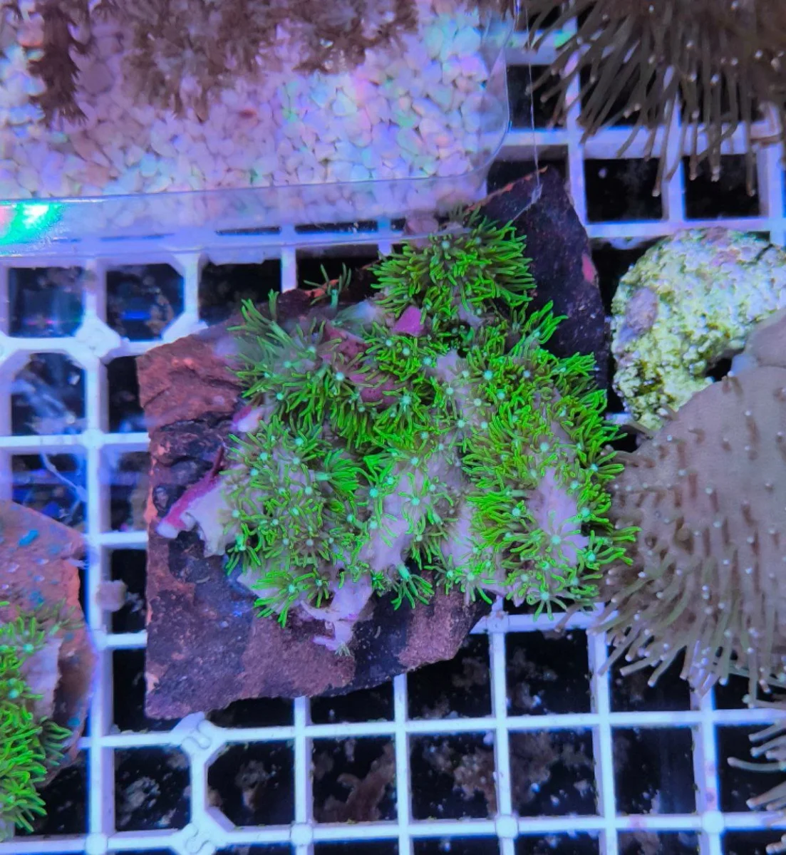 Bellissimo corallo molle di facile gestione. Ha una crescita tappezzante, infatti cresce e ricopre i supporti dove lo posizioneremo. Non ha molte esigenze, cresce anche con poca luce, ed è un’ottima idea per ricoprire il vetro spoglio degli acquari berlinesi, in moltissimi infatti fanno ricoprire interamente la base coprendo totalmente il vetro. In alcune situazioni può essere infastidito dalla forte corrente. foto della galleria reali, ogni quadretto della griglia misura 1,7 cm
