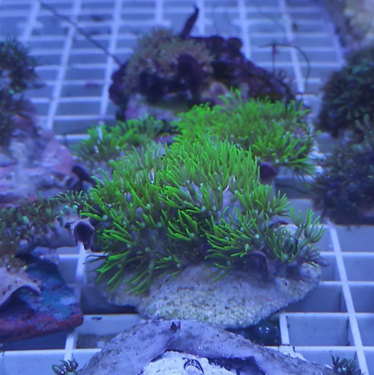 Bellissimo corallo molle di facile gestione. Ha una crescita tappezzante, infatti cresce e ricopre i supporti dove lo posizioneremo. Non ha molte esigenze, cresce anche con poca luce, ed è un’ottima idea per ricoprire il vetro spoglio degli acquari berlinesi, in moltissimi infatti fanno ricoprire interamente la base coprendo totalmente il vetro. In alcune situazioni può essere infastidito dalla forte corrente. foto della galleria (non di copertina) reali ogni quadretto della griglia equivale a 1,7 cm alcune volte su basetta artificiale, altre senza per un più facile collocamento in acquario