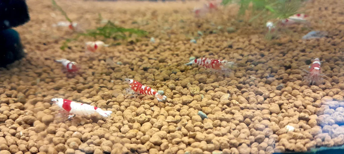 Caridina Red Crystal, onnivora, se ne consiglia l’allevamento in branco.