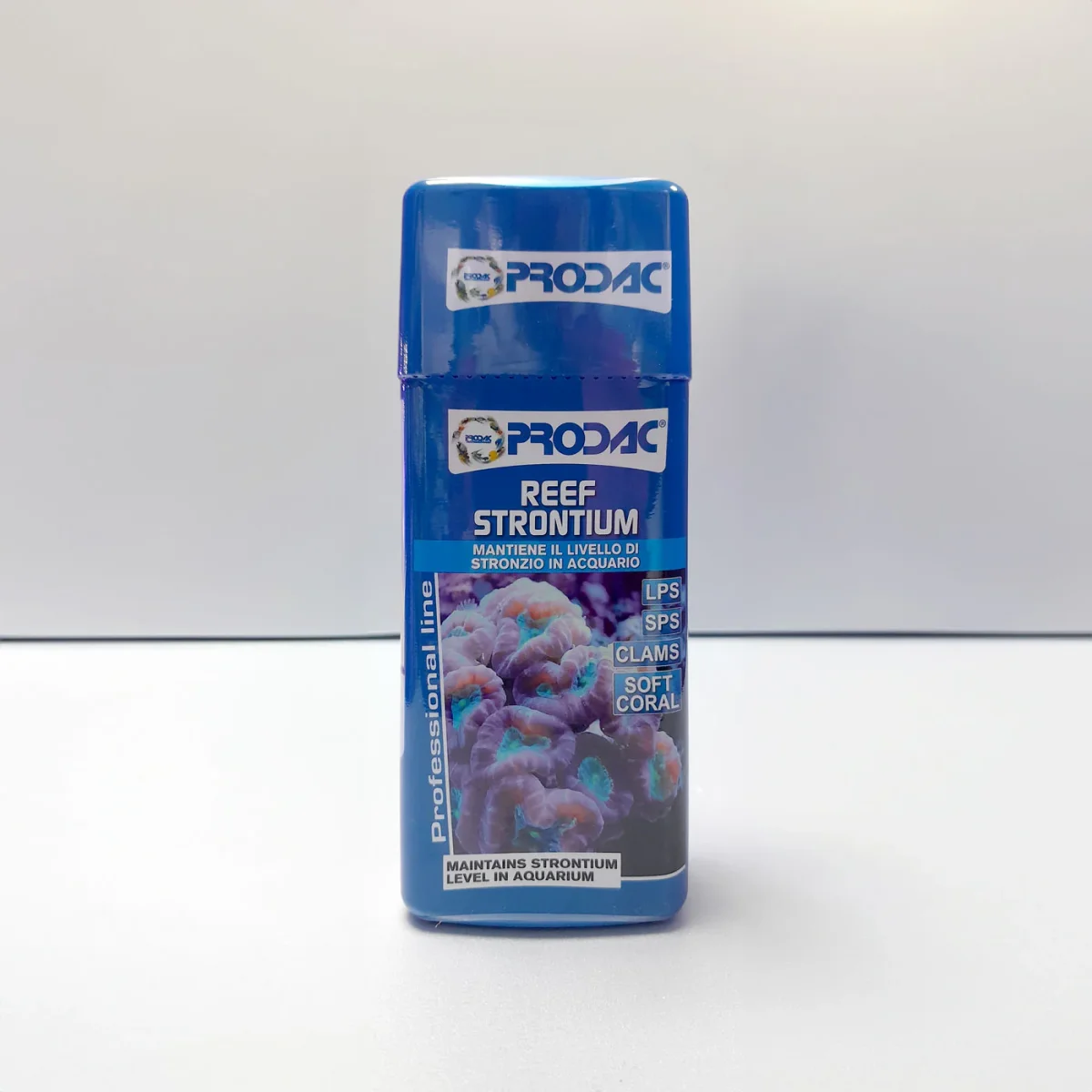 Lo stronzio e’ usato dai coralli duri per il mantenimento e la formazione dello scheletro. Il valore ideale si attesta fra 8-8.3mg/lt Dose: 5ml ogni 100lt fino al raggiungimento del livello desiderato