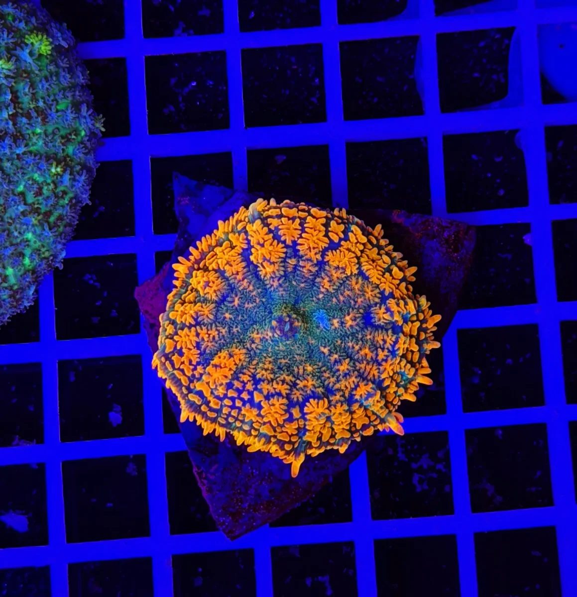 I Rhodactis sono tra i coralli più affascinanti e scenografici del panorama reef, celebri per le loro texture complesse e per la capacità di combinare colori profondi con sfumature brillanti e fluorescenze sorprendenti. La loro superficie morbida e ricca di tubercoli crea un gioco di volumi unico, capace di catturare la luce e restituirla con intensità e dinamismo. Sotto illuminazione LED attinica, la loro fluorescenza diventa davvero spettacolare: i toni verdi si accendono di una luminosità elettrica, mentre i punti e le sfumature centrali emergono con una definizione straordinaria, creando un effetto quasi tridimensionale. Un piccolo “paesaggio alieno” che prende…