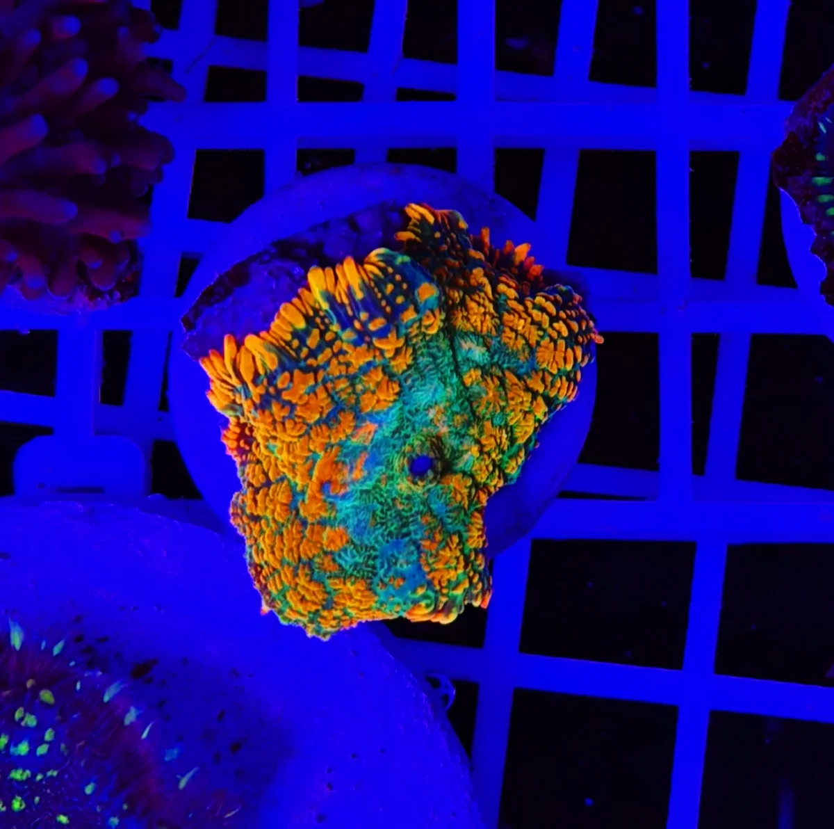 I Rhodactis sono tra i coralli più affascinanti e scenografici del panorama reef, celebri per le loro texture complesse e per la capacità di combinare colori profondi con sfumature brillanti e fluorescenze sorprendenti. La loro superficie morbida e ricca di tubercoli crea un gioco di volumi unico, capace di catturare la luce e restituirla con intensità e dinamismo. Sotto illuminazione LED attinica, la loro fluorescenza diventa davvero spettacolare: i toni verdi si accendono di una luminosità elettrica, mentre i punti e le sfumature centrali emergono con una definizione straordinaria, creando un effetto quasi tridimensionale. Un piccolo “paesaggio alieno” che prende…