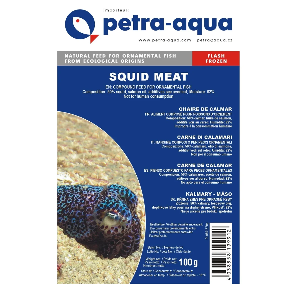 blister da 100 grammi di carne di calamari per pesci marini e dolci, ed altri animali