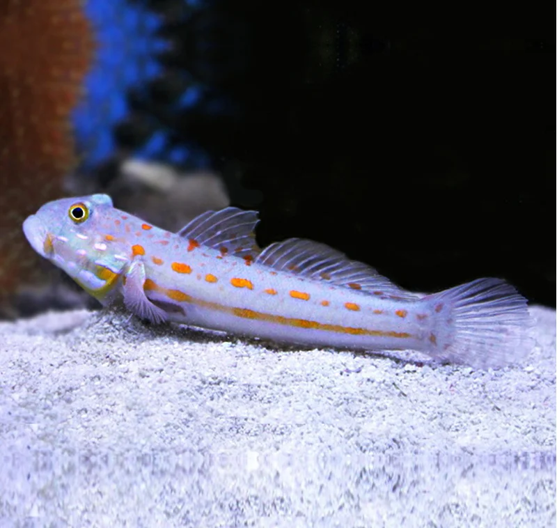 La Valenciennea puellaris, conosciuta come Gobide diamantato, è un pesce marino molto apprezzato per la sua colorazione elegante e il comportamento caratteristico. Il corpo bianco perla è impreziosito da puntini e linee aranciate che gli conferiscono un aspetto raffinato e luminoso, rendendolo un esemplare di grande impatto estetico in vasca. Specie pacifica e resistente, trascorre gran parte del tempo filtrando la sabbia alla ricerca di cibo, contribuendo così a mantenerla pulita e ossigenata. È ideale per acquari di medie dimensioni con fondo sabbioso e rocce vive, dove può muoversi liberamente e trovare i suoi rifugi. Si adatta bene alla vita…